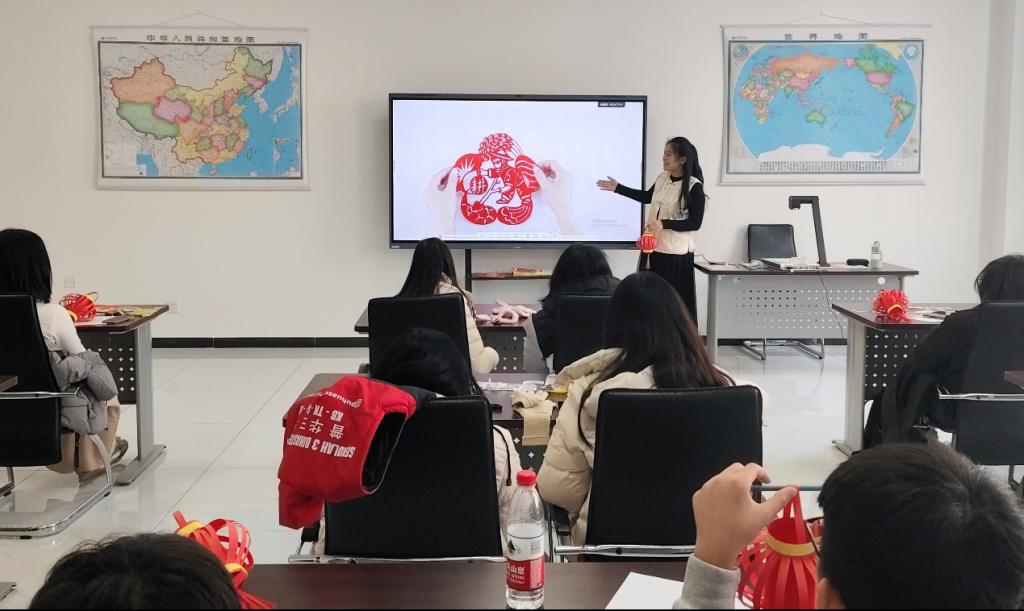 活动伊始,贾丽媛老师以中华传统节日为切入点,从春节习俗引到灯笼的历史渊源、文化寓意,细致阐释灯笼在传统节庆中的象征意义与非遗工艺价值,结合直观的视频展示,带领学子们领略灯笼承载的千年文化底蕴。