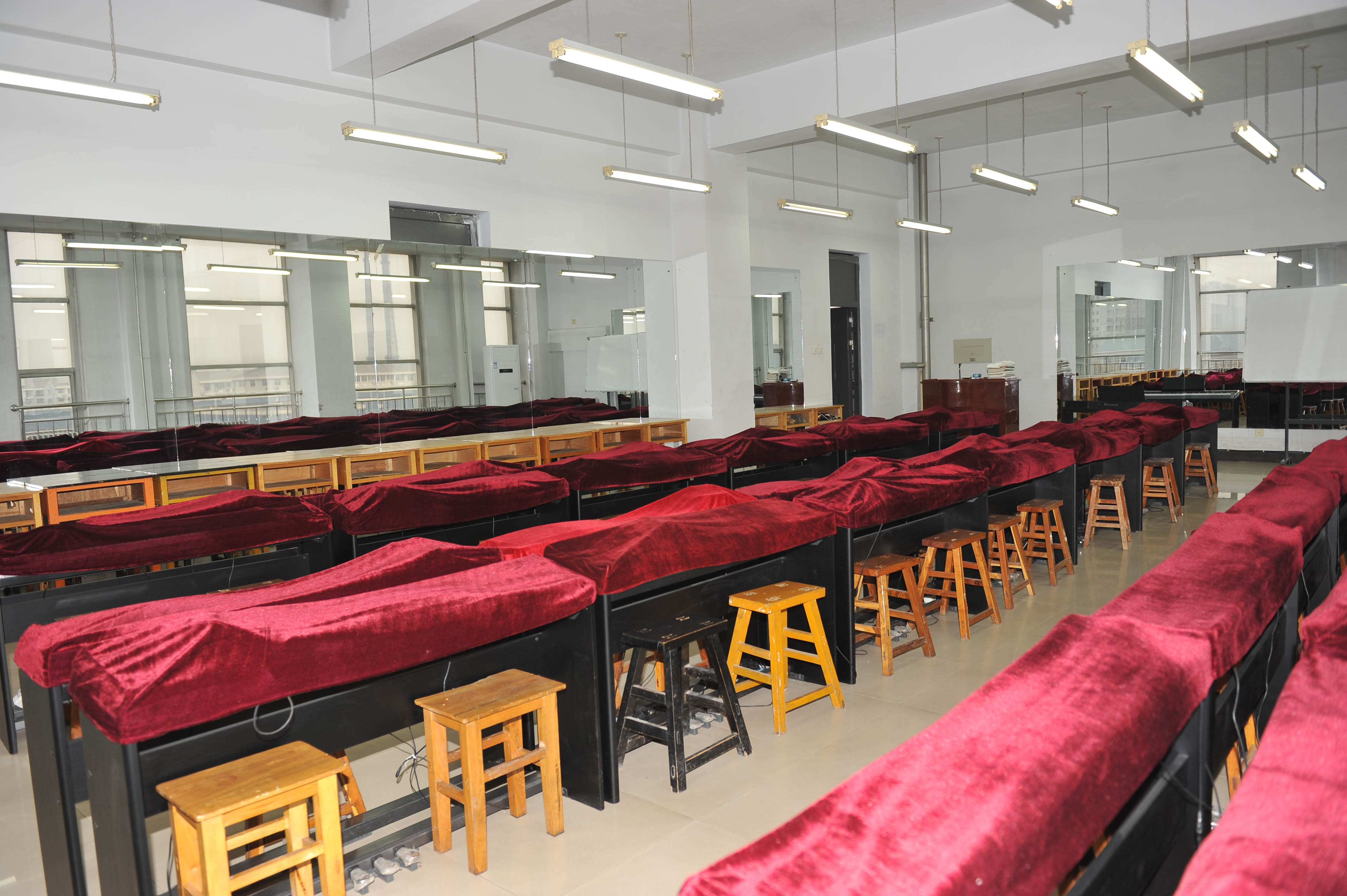 电钢琴教室共备有钢琴102 架,每架配耳麦,学生练琴时互不干扰,以达到集体教学的目的。主要用于钢琴基础、即兴伴奏的实训教学。