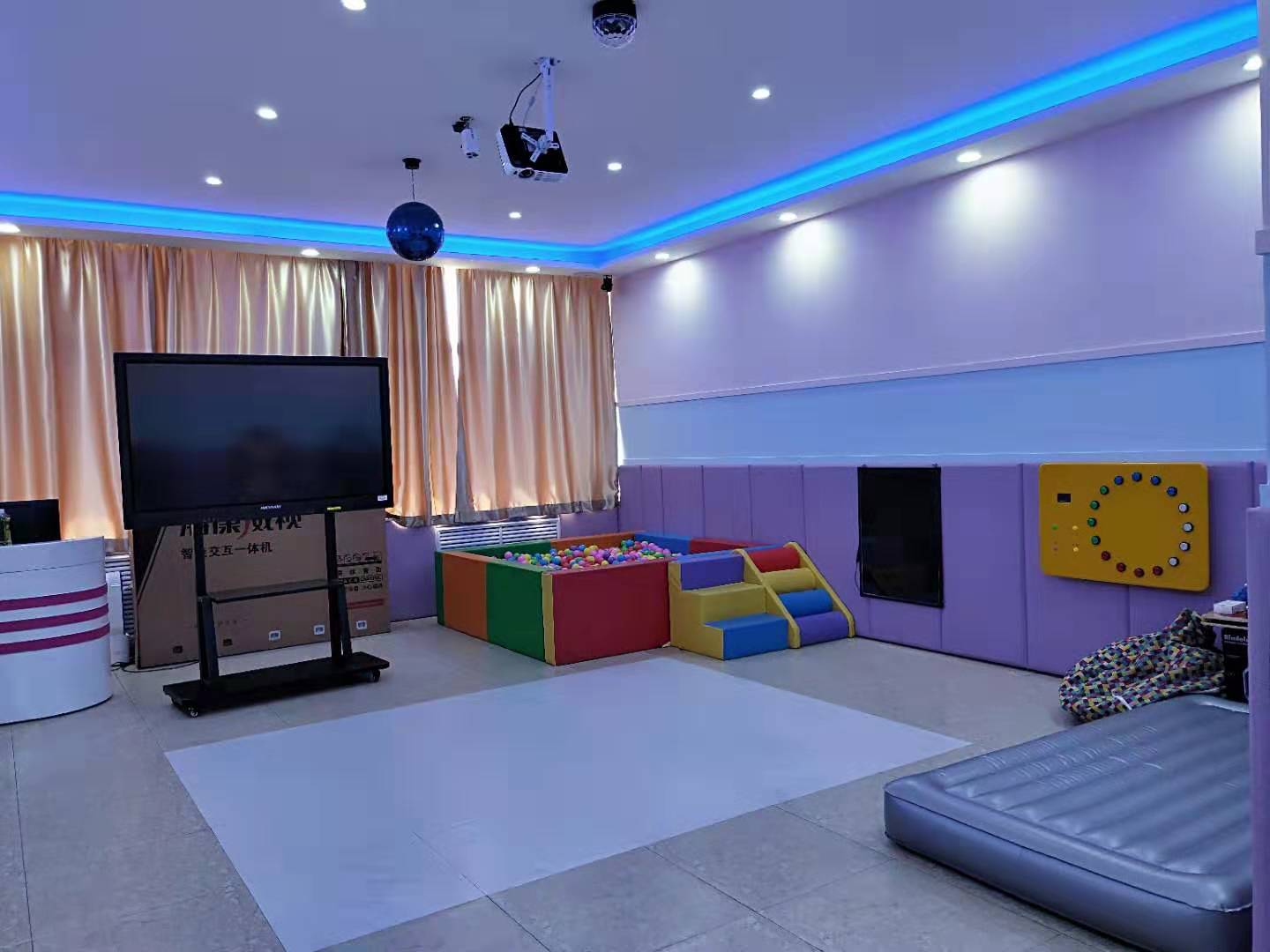 实训室主要设备:多感官设备一套,包括多感官配套控制系统、多感官声音感知训练系统、多感官配套投射系统、音乐治疗音响、泡泡管、声光墙面板等