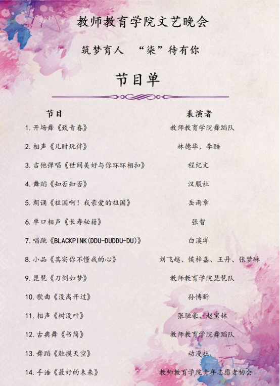 在畿辅会堂开展了以“筑梦育人,柒待有你”为主题的文艺晚会,同时倡导同学们积极参加,踊跃报名。