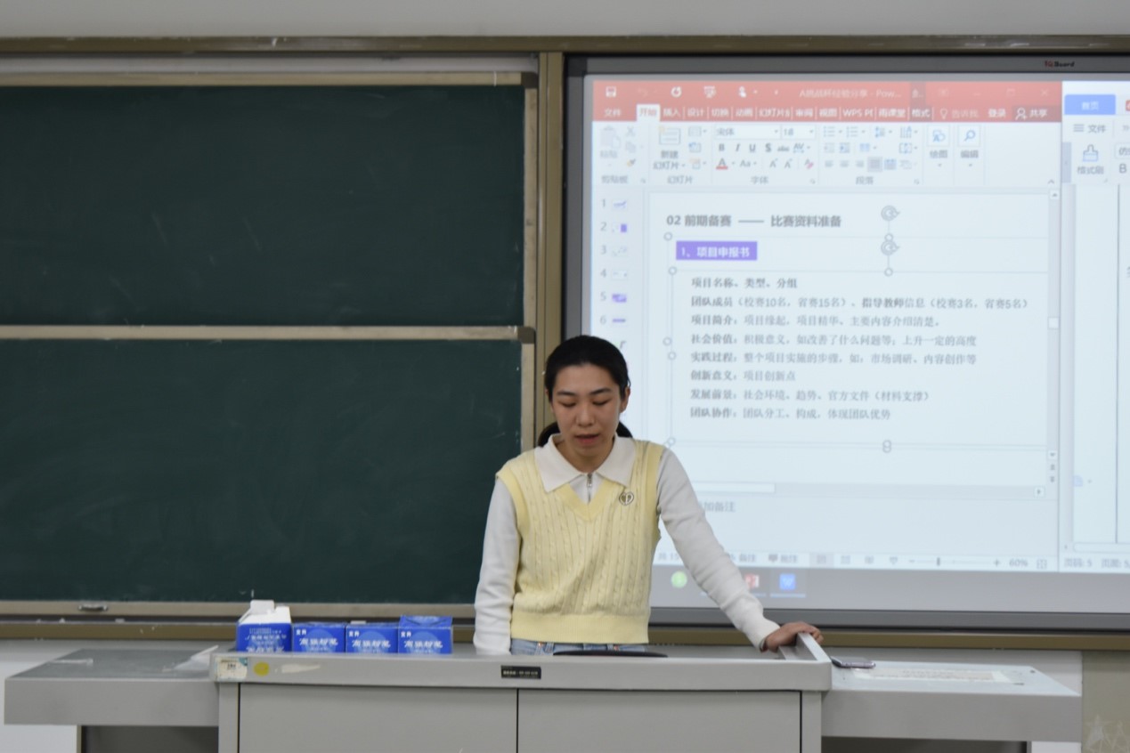 范亚彤同学主要围绕比赛介绍、前期备赛、赛程阶段和赛后总结四个方面进行了分享。首先,范亚彤同学对挑战杯进行了详细的介绍;其次,在前期备赛方面,从选题和定题、资料收集和市场调研、比赛资料准备三方面进行了经验传授,前期备赛至关重要,不能打无准备之仗;最后,对赛程阶段和赛后总结方面进行了论述,和大家深入分析了其参赛作品《红色河北系列原创绘本》的优胜之处,强调了参加挑战杯大赛应注意的重点。从前期的准备到后期参赛答辩,都给予了同学们一些宝贵的建议。