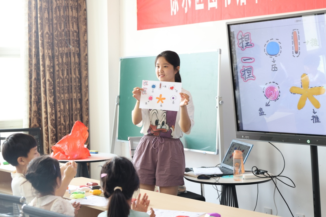 为引导学生在动手制作粘土的同时回顾艰苦党史,习得劳作不易,养成勤俭节约、珍惜美好生活的良好品质,社会实践团队成员凌嘉欣带来了与红色党史相结合、别具匠心的“与泥同乐,塑梦未来”多样粘土公益课。